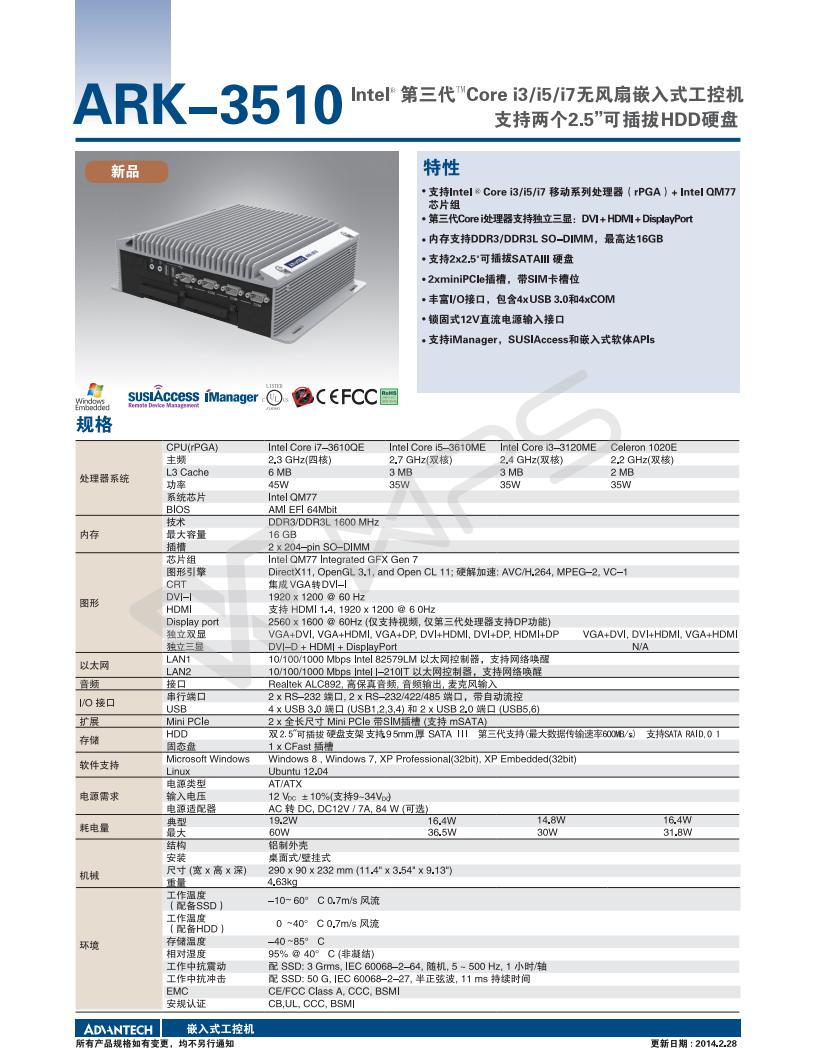 無(wú)風(fēng)扇嵌入式工控機(jī)ARK-3510
